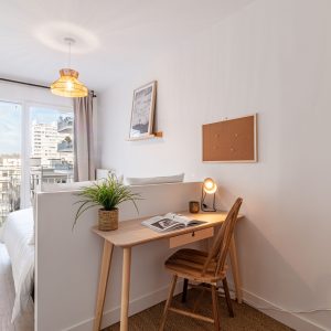 Profitez d’une chambre privée 4*, d’un lit double, d’un bureau et du rangement dans un grand appartement pensé pour la vie à plusieurs: cuisine équipée, salon décoré avec soin, deux sanitaires, deux salles de bain, dont une privative. ️ ️ LES ÉQUIPEMENTS