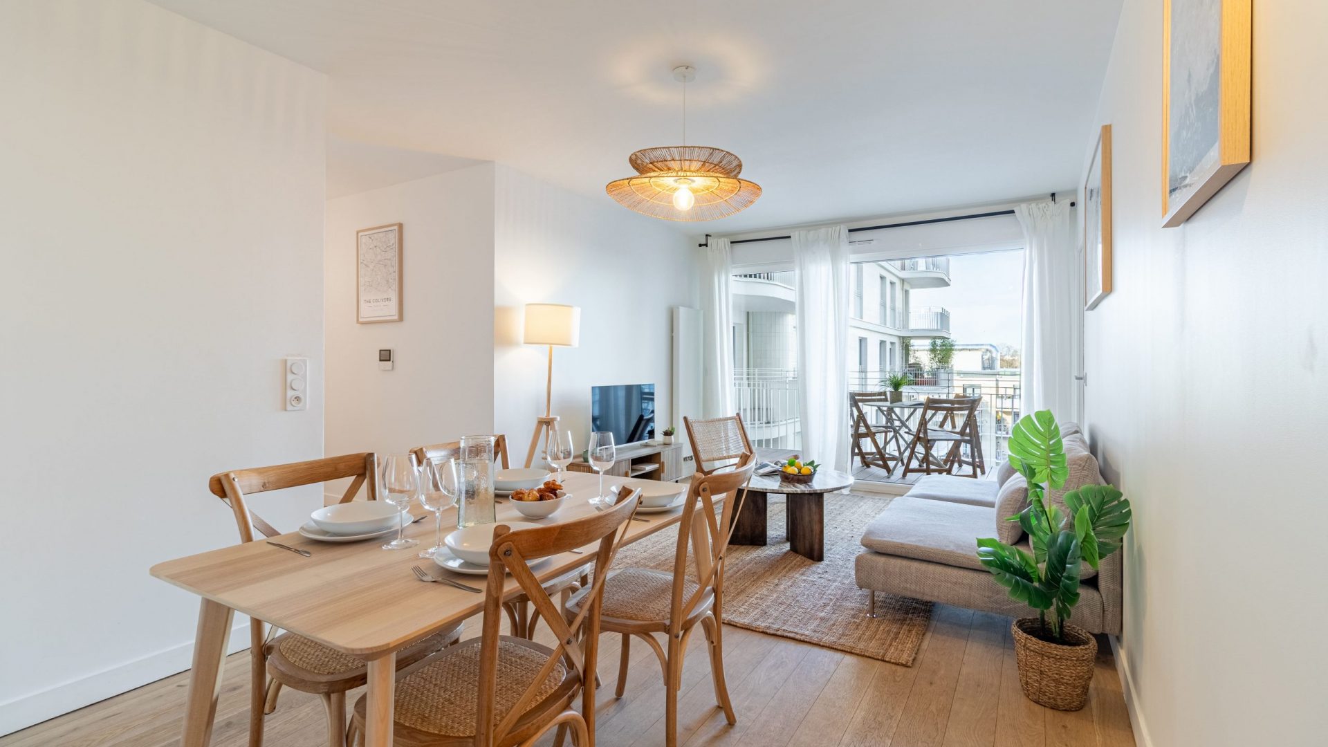 – cuisine équipée pour la vie à plusieurs : frigo, congélateur, lave-vaisselle, machine à café, four, micro-ondes, plaques de cuisson, vaisselle, ustensiles… – lave linge et sèche linge – literie hôtelière (140 cm * 200 cm) – chauffage collectif – douche, baignoire et vasque avec rangements, miroir – mobilier design – double vitrage – TV – bâtiment sécurisé – garage vélo – terrasse